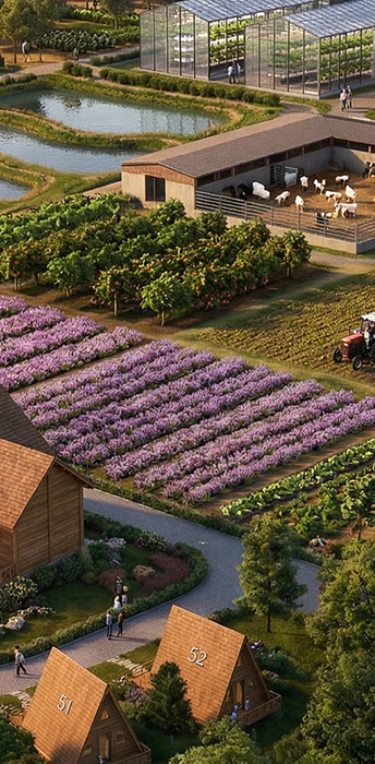 A diversified income model combining farming, tourism, and research, designed to generate consistent cash flow while reducing overall investment risk.